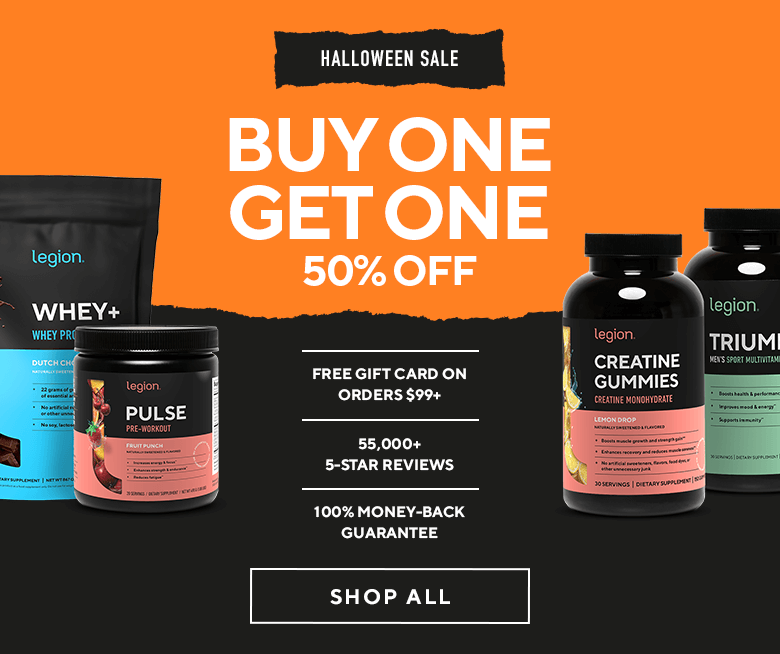 Buy one supplement, get one 50% off when you use code LEGION10 at checkout.