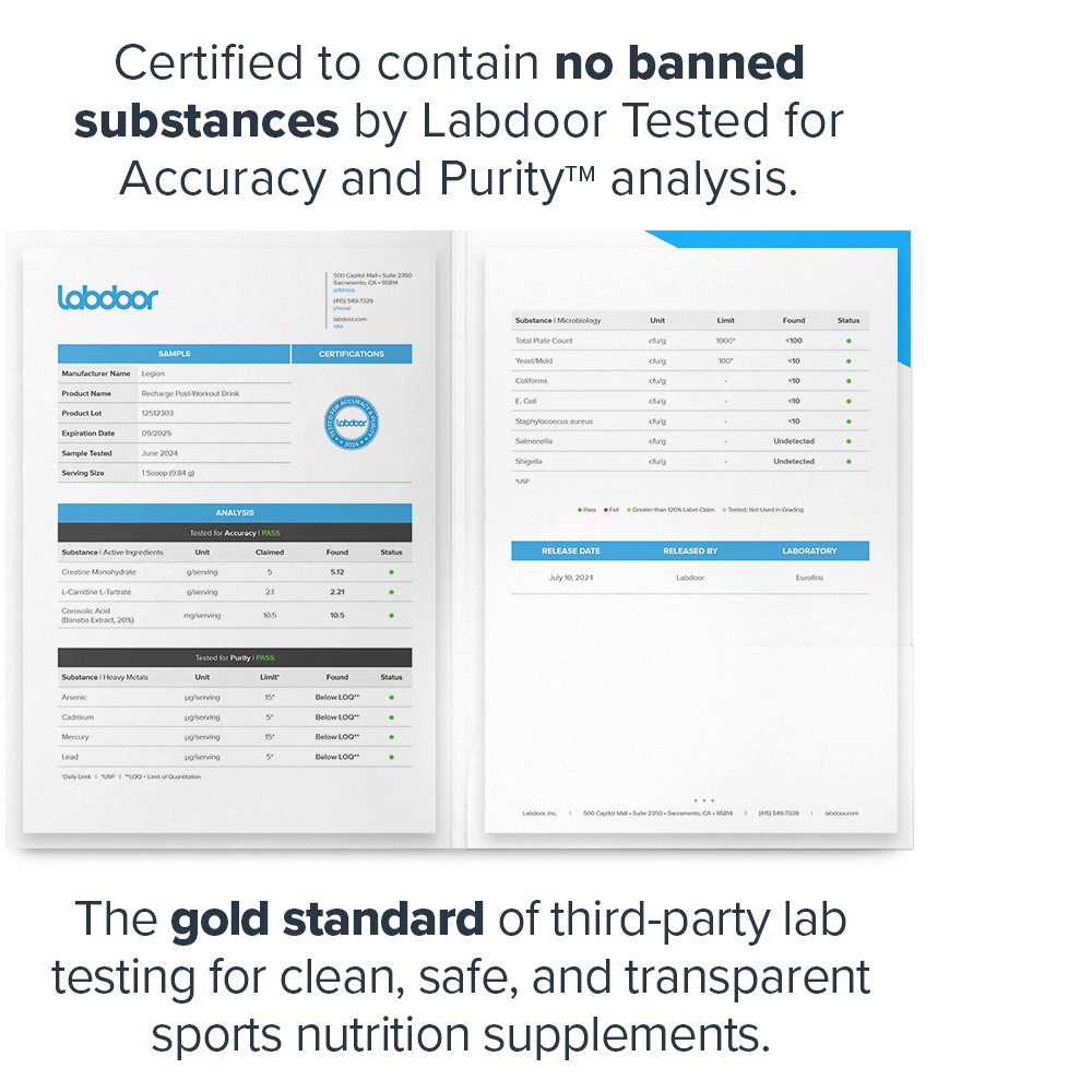 - Certified to contain no banned substances by Labdoor™, the gold standard of third-party lab testing[19]