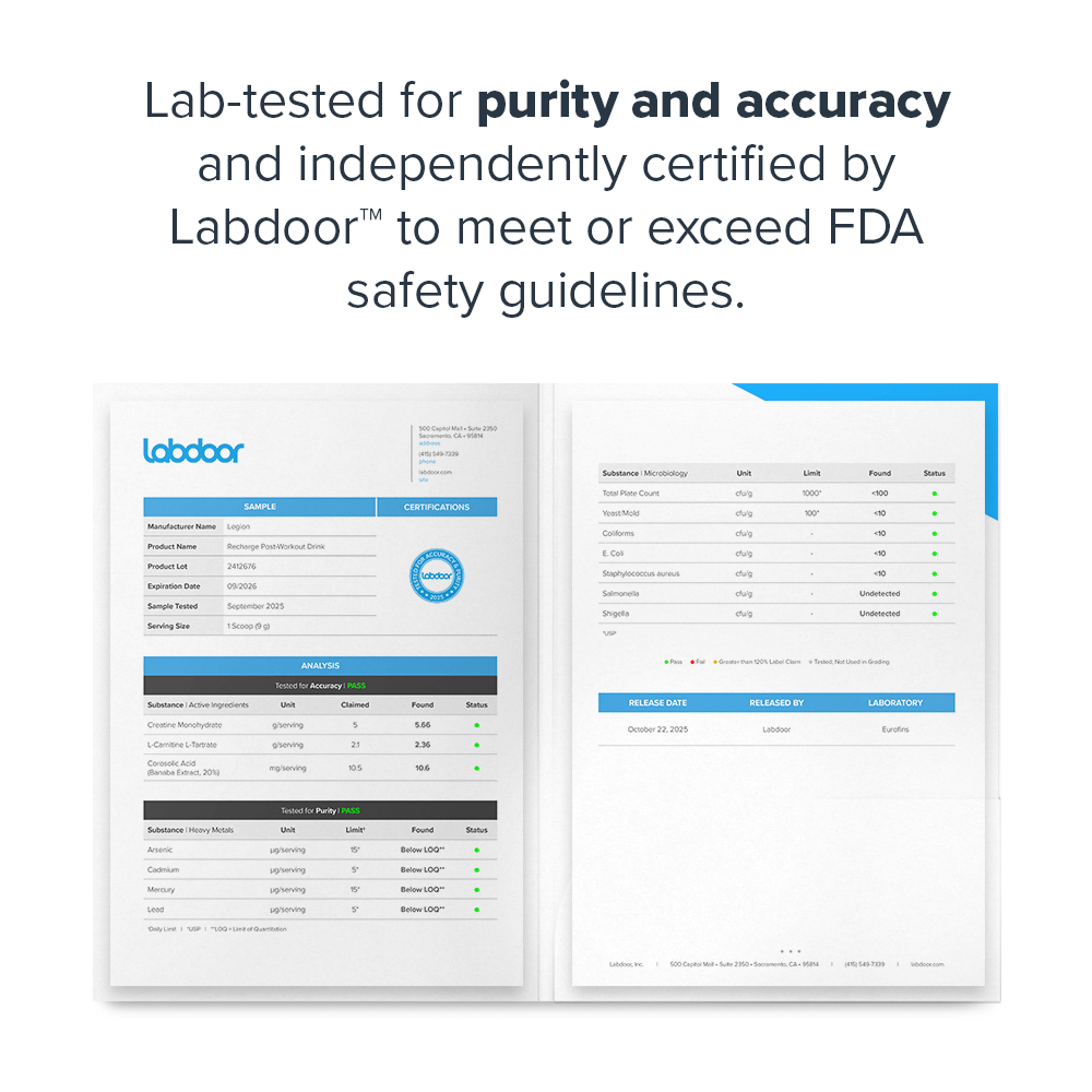 The Muscle Growth Stack is lab-tested for purity and accuracy and independently certified by Labdoor™ to meet or exceed FDA safety guidelines.