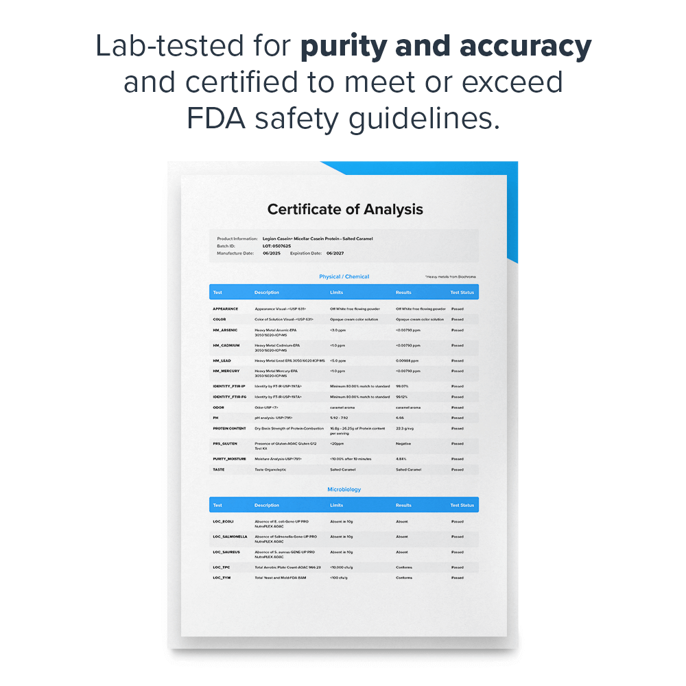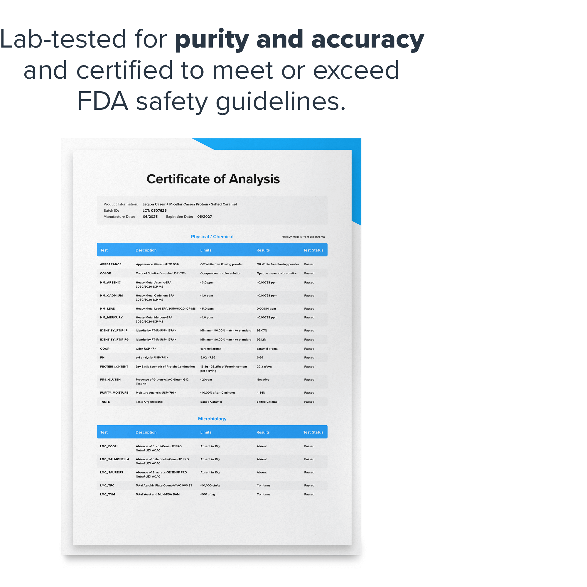 Every bottle of Casein+ is guaranteed to provide exactly what the label claims and nothing else—no heavy metals, microbes, allergens, or other contaminants.↑